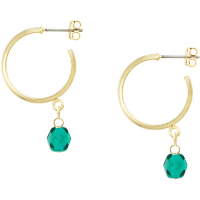 5月の誕生石「エメラルド」をイメージしたチェコビーズが印象的な、軽やかなフープピアス。